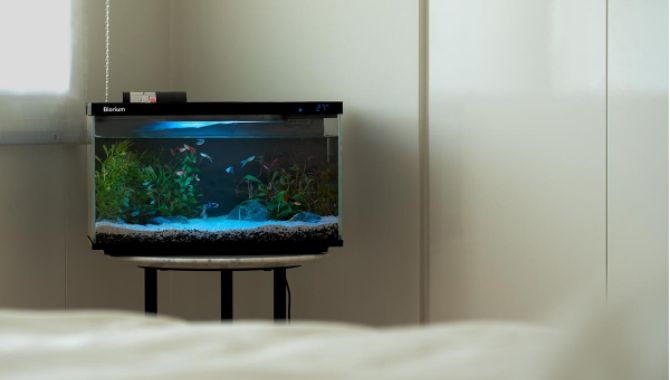 彼女が東京で暮らすお部屋にも水槽がありました。コンクリートの壁に鉄骨が剥き出しの天井、熱帯魚の水槽って無機質な素材によくあいます。素材はガラスで直線的な形状、光もどちらかというと蛍光灯の色に近いので、スタイル的にはモダンな空間との相性がいいのです。とはいえ、生き物なのでインテリアのためだけには買えないですね。