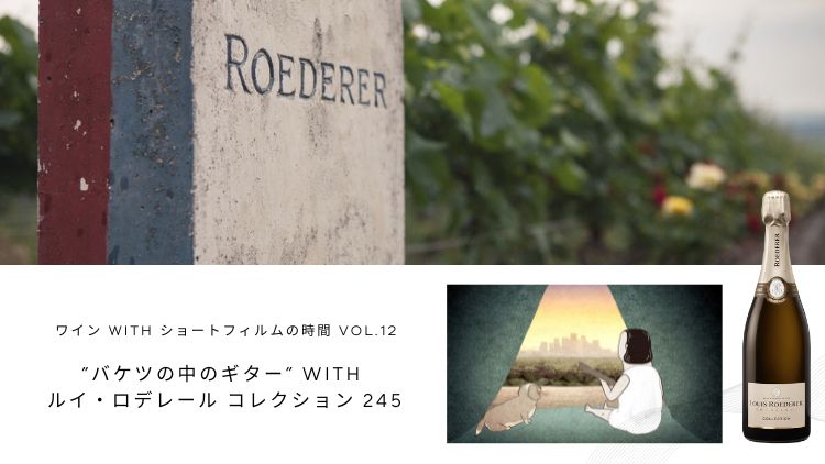 話したり、一緒に散歩するにもコインが必要…コインさえあれば、パートナーや経験ですら手に入るのですが、その世界はどこまでもむなしさと満たされることのない渇望感が漂っています。観ながらふと、こうした世界とまったく逆行するのが、“ワインのあるシーン”なのでは、と思わされました。ワインはひとりで飲んでももちろん良いのですが、それ以上にシェアして楽しむことこそ、ワインの醍醐味だと言えます。気の置けない友人や大切な人とともに、栓を抜き、乾杯をして、会話と共にワインを楽しみ、ときには映画のようにワインの味わいの感想を伝え合う・・・。『バケツの中のギター』ではとても叶いそうにない(もしくは非常にたくさんのコインが必要となりそう…)からこそ、ぜひ現実の日常を豊かにするためのツールとして、ワインを楽しんでみてはいかがでしょうか。季節は12月。今年を振り返りながら、そして新しい年を祝うのに最適なワインと言えば、シャンパーニュ。『バケツの中のギター』を観た後には、乾杯をしてシェアできる喜びをルイ・ロデレール コレクション245で存分に味わってください。