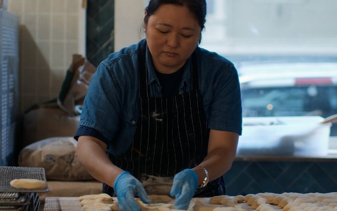 ある日、深夜に友人とふらっと立ち寄ったとき、レジで「こんばんは!」と日本語で声をかけられて、思わずびっくりしました。それが、アヤさんとの最初の出会いでした。その場で、この老舗ドーナツ店を日本で育った彼女が切り盛りしていると知ってさらに驚きました。ボブズは場所として魅力的だと思っていたんですが、アヤさんのこれまでの道のりがそこに重なった瞬間に、「これは一本の映画になる」と直感したんです。後日あらためてお話を伺って、その感覚が確信に変わりました。
