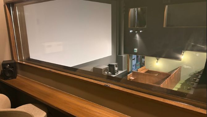 スクリーンは壁にペイントすることでコストダウン。結果的にノイズの出ない解像度の高いものとなりました。「機能とコストを優先した結果生まれたものが随所にあります。」